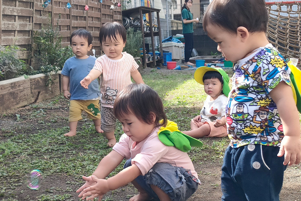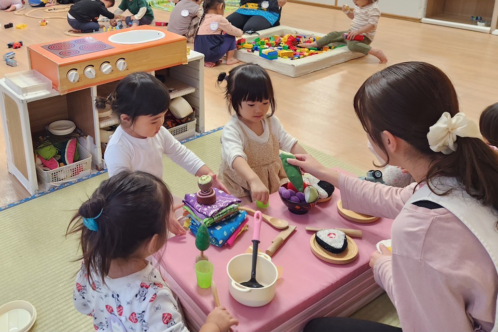 愛着関係を大切にしながら、わらべうたや手作りおもちゃで遊ぶことを大切にしています。